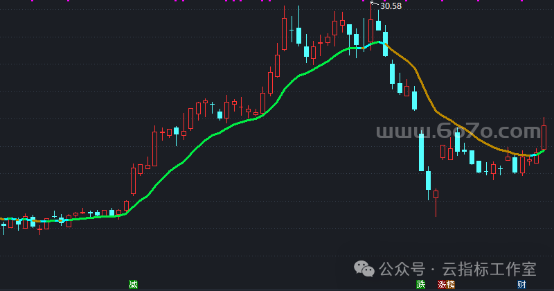 卖:IF(趋势线<REF(趋势线,1),趋势线,DRAWNULL) //趋势向下时切换颜色