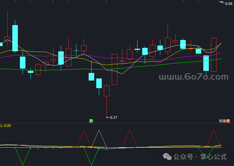 计算层:叠加金叉(红)、死叉(绿)、0轴破位(黄)三重信号