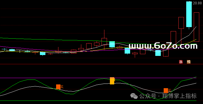 核心概念2:变盘信号的捕捉变盘信号是指短期趋势与长期趋势的交叉点。指标通过计算EMA(3)和EMA(13)的差值,并判断其交叉情况,来捕捉变盘信号:L1 = EMA(CLOSE,3) - EMA(CLOSE,13)L2 = EMA(L1,9)变盘 = CROSS(L1,L2) AND L5当L1上穿L2且L5为正时,意味着短期趋势由弱转强,是一个潜在的买入信号。
