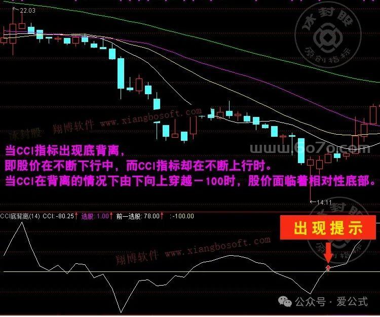 CCI:=(TYP-MA(TYP,14))/(0.015*AVEDEV(TYP,14))双低点验证机制:要求股价创新低时CCI指标抬高