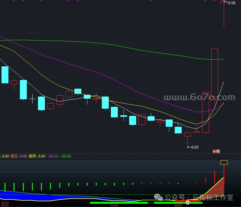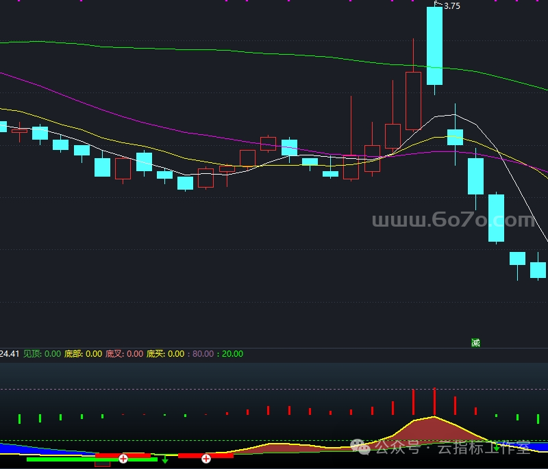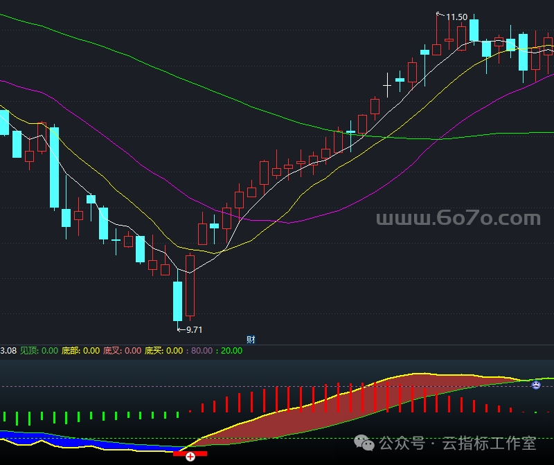 实战:当中线(黄)上穿长线(绿),且股价站上20日线,往往是主升浪起点。如2025年3月宁德时代突破平台时,指标同步发出“底买”信号,随后月涨幅超35%。
