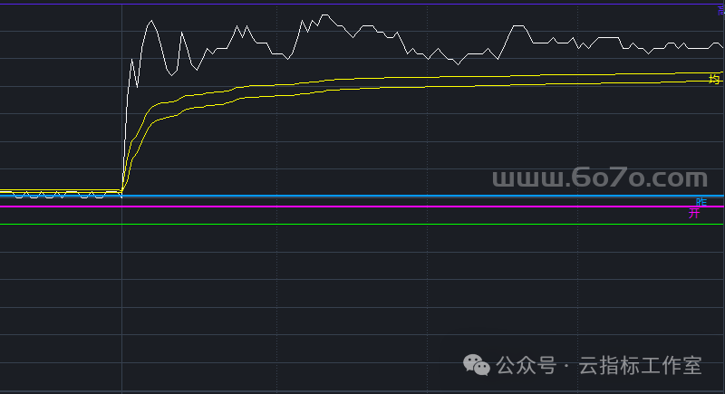 昨收:DYNAINFO(3); 今开:DYNAINFO(4)均价:SUM(V*C,0)/SUM(V,0) //多空博弈的实时痕迹