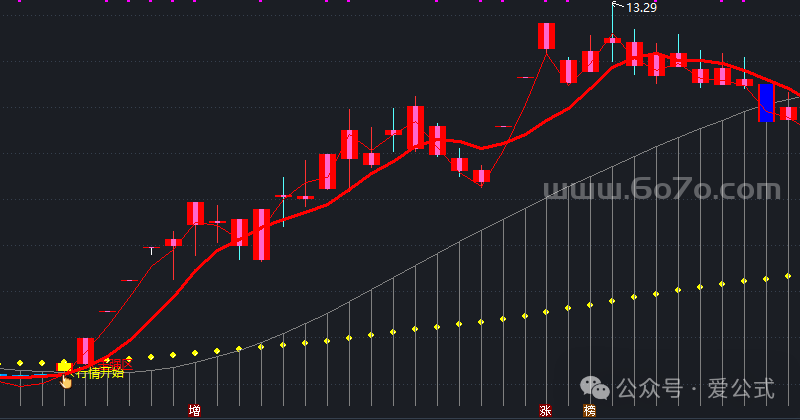 牛熊分水岭 —— 黄色牛熊线这是我最看重的 “安全阀门”,原理类似超市的促销警戒线:当股价站稳牛熊线(黄色均线),就像超市生鲜价格低于成本线,意味着主力已经完成建仓,随时可能启动行情;跌破则要警惕,好比菜价突然飙升,大概率是短期炒作过热。源码里通过 DMA 算法融合成交量加权,比普通均线更灵敏,2023 年 10 月 23 日欧菲光放量突破牛熊线后,短短 2 个月涨幅达 180%。