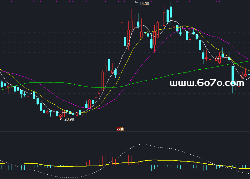 卖点 :红柱高度连续递减,或个股动能线与价格出现顶背离。