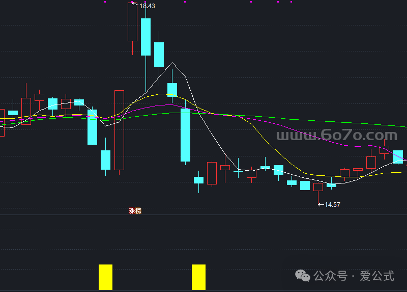 主力资金如同《华尔街之狼》的操盘手,总在散户犹豫时完成布局。我们的 AA3 指标(EMA(IF(LOW<=VERE...))) 正是破解这场博弈的密钥。当 黄色柱状线突破 60 日极值,就像黑暗矿洞中突然亮起的探照灯 ——2024 年 3 月,该指标曾提前 7 个交易日 捕捉到某新能源龙头的主升浪,当时市场还沉浸在 " 产能过剩 " 的恐慌中。