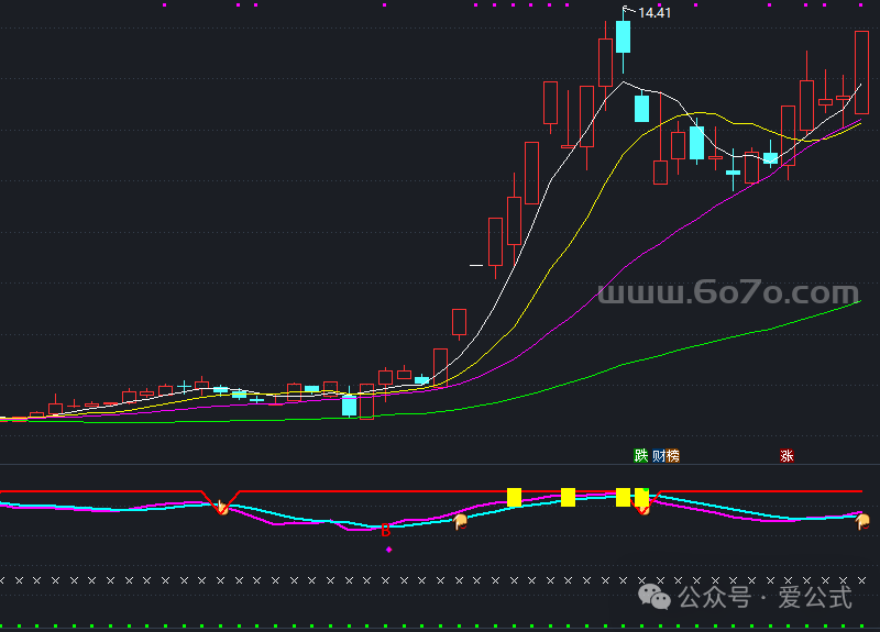 低位金叉「▓●」买,突破 30「□」加仓; 主升浪看「◆○」号,高位死叉「骷髅」抛; 资金破顶「黄柱」现,见顶清仓别迟疑; 纪律大于盘后分析,执行胜过万句道理。