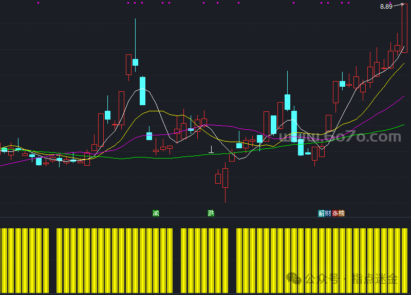 这份通达信指标源码,实则是用数学语言重构了《周易》的阴阳哲学。当MA5下穿MA13形成的“阴爻”遭遇EMA19与EMA7的“阳爻”,便构成六十四卦象中的“地雷复”卦。VAR02的百倍放大如同宣纸上的墨韵渲染,而LLV函数检索历史低点的过程,恰似古董藏家擦拭青铜器寻找包浆痕迹。