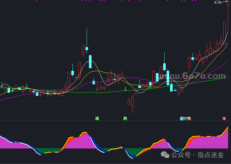 主力线 :犹如引领方向的灯塔,凭借双指数均线与资金流精准捕捉主力动向。