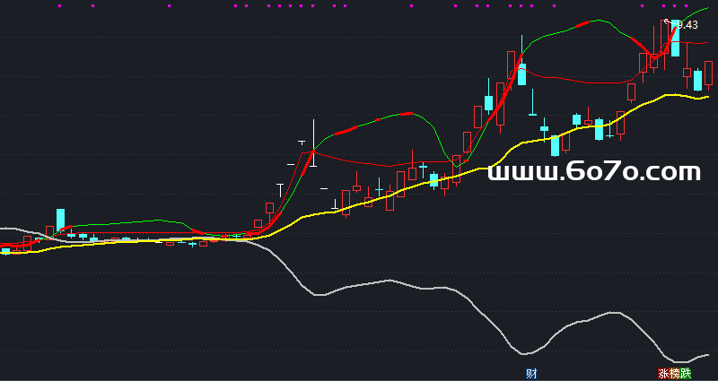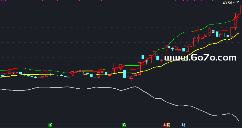 FL:=MA(CLOSE,17)+ABS(MA(CLOSE,17)-REF(MA(CLOSE,17),1)),COLORF4E202;