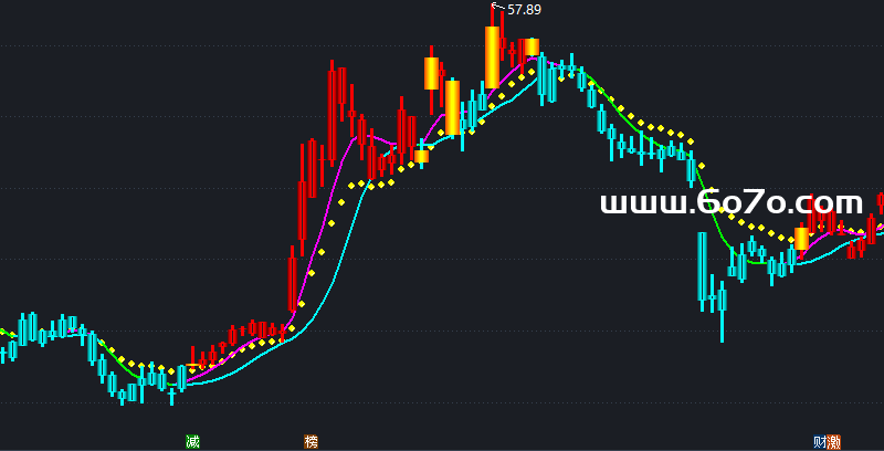 多空线:(MA(CLOSE,3)+MA(CLOSE,6)+MA(CLOSE,12)+MA(CLOSE,24))/4,COLORYELLOW,CIRCLEDOT;