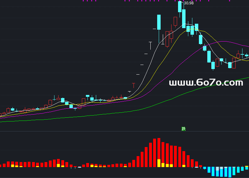 蓝柱:SMA(中线,3,1),COLORSTICK,COLORFFFF00;