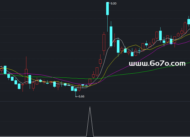 低位无量长阳:= 开<20 AND 换手率<=3 AND (收-开)>=18;