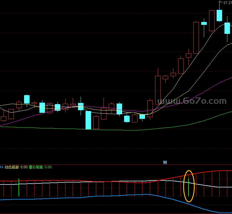 看动态底部是否 >5(黄色线强度)