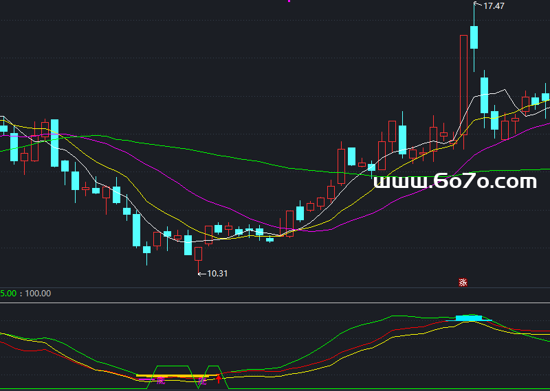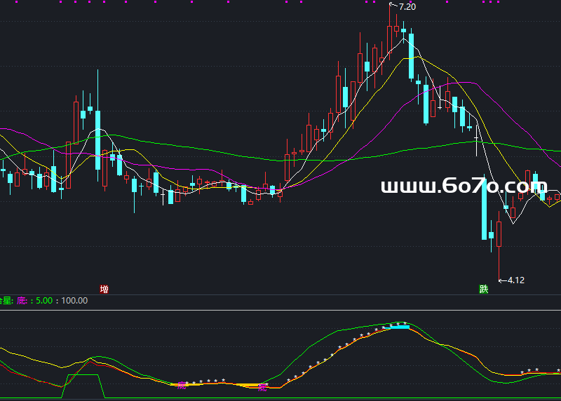 看底:STICKLINE(中线<15,中线,15,6,0),COLORF00FF0;