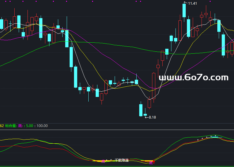 DRAWTEXT(CROSS(短线,长线)AND 长线<18 AND 长线>REF(长线,1)OR CROSS(长线,5),20,'千载难逢');