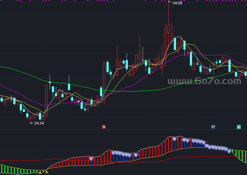 红柱上穿黄线 :主力介入初期,资金承接明显(如 2024 年 10 月新能源板块启动前信号);