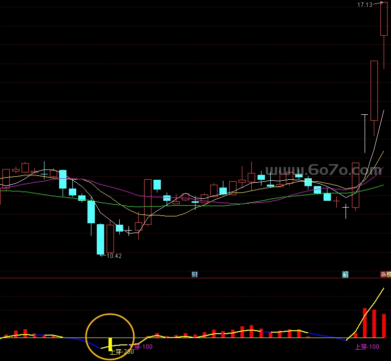 主力进场的 “摩斯密码” 黄色柱状线出现时(源码 STICKLINE 函数),代表市场情绪从绝望转向复苏。这不仅是技术拐点,更是散户与主力心理博弈的转折点。