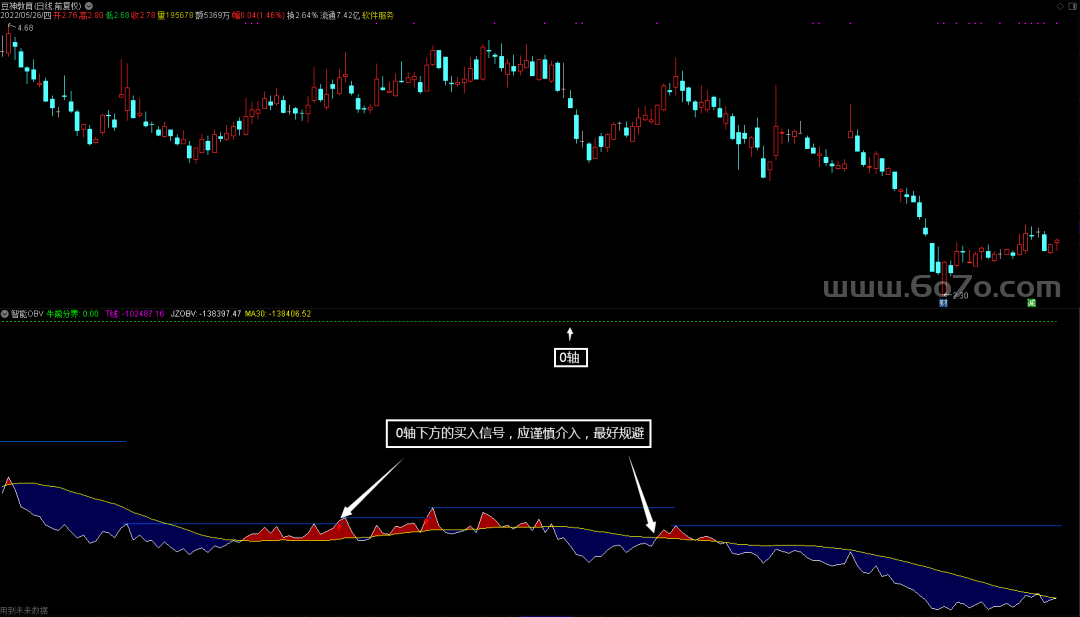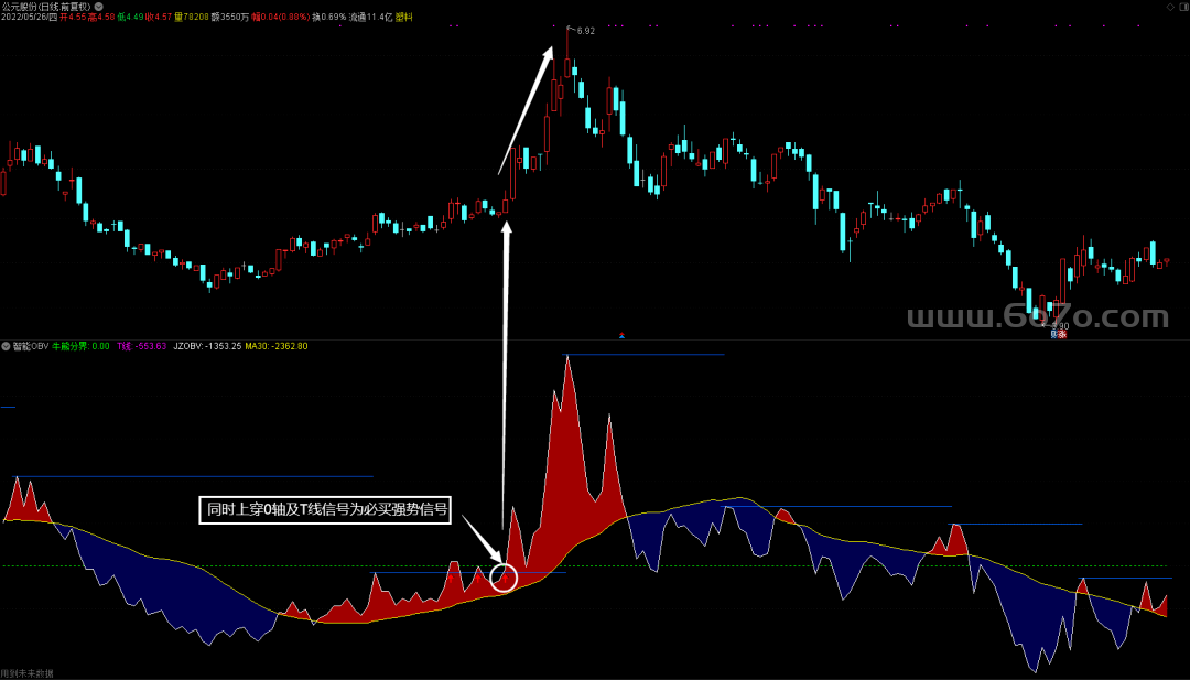 DRAWICON(CROSS(JZOBV,T 线 ),T 线 *0.99,1); 价格新高但 OBV 走平?赶紧跑!2025 年微盘股跳水前,OBV 提前 3 天预警。