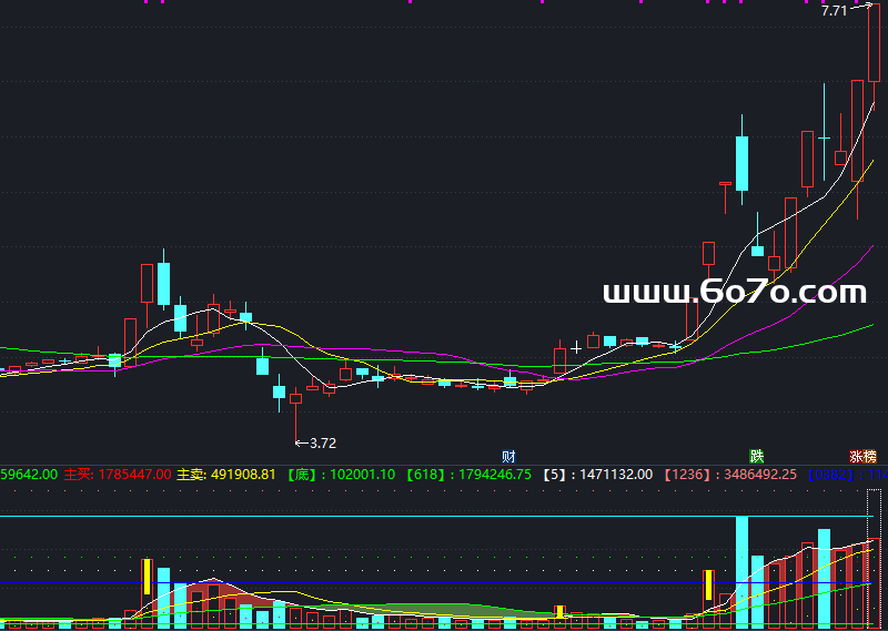 白黄绿均线 :白色短均线灵敏,黄色中均线稳重,绿色长均线压阵。三线交织,趋势尽显。