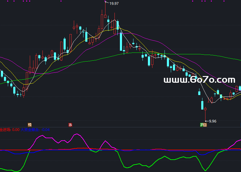 主力开始进: IF(V4>=0,V4,0),COLORFF00FF,LINETHICK2;