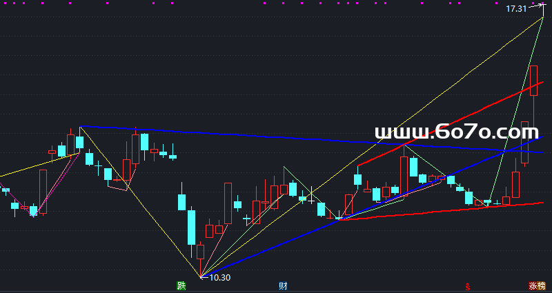 特别注意蓝色粗线和红色粗线!它们分别是 8 日和 13 日高低点连线,是主力操盘的 “战略地图”。#指标解析