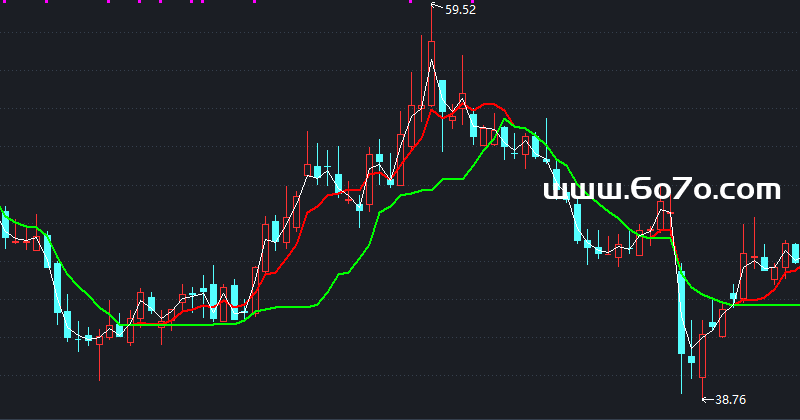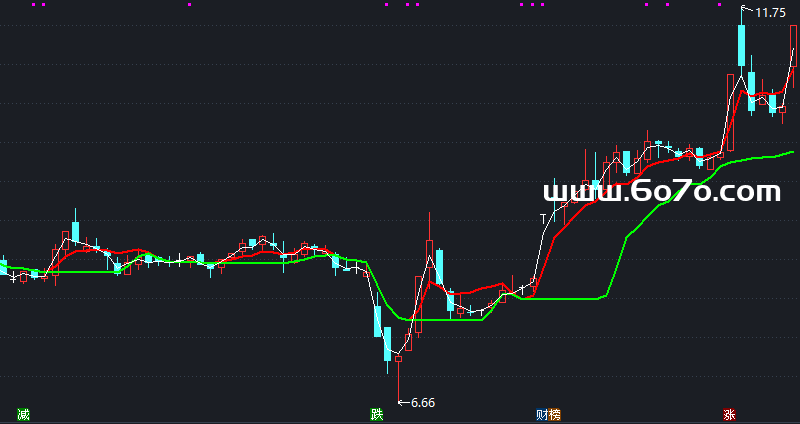 多头线:(SUM((((2)*(CLOSE-CLOSE*0.2)+(OPEN-OPEN*0.2)+(HIGH-HIGH*0.2)+(LOW-LOW*0.2))/(5))*(VOL),8))/(SUM(VOL,8))+C*0.2,LINETHICK2,COLORRED;空头线:LLV(多头线,8),LINETHICK2,COLORGREEN;A0:=C-C*0.2;走势线:EMA(A0,2)+C*0.2,LINETHICK1,COLORWHITE;