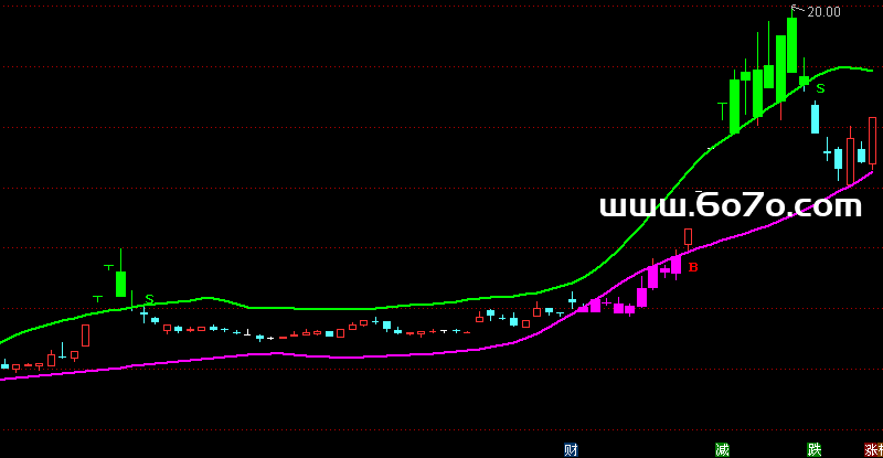 03 实战应用:从血泪教训到稳定盈利的转折点亲历:如何用这个指标躲过暴跌、抓住翻倍股? 💡案例1(逃顶): 2023年新能源大跌前,某龙头股股价多次刺穿绿色卖出线并出现“S”符号,果断清仓避开40%跌幅;案例2(抄底): 今年医药板块筑底时,多只个股出现紫色柱+“B”信号,锁定其中业绩稳健的一只,3个月获利75%!操作口诀:“紫区分批买,绿区果断卖,无信号时喝茶看戏”——保住本金才是硬道理!#趋势交易心法