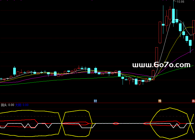 中线:IF(J>K,J,0),COLOR00FFFF,LINETHICK2;