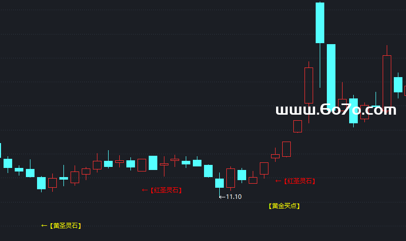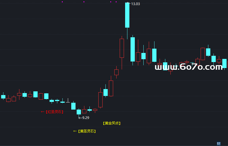 黄金买点:当股价连续4天低于黄金线后突然放量突破时出现黄圣灵石:当股价经过充分调整后出现底部反转信号时出现红圣灵石:当超卖状态出现强势反弹信号时出现
