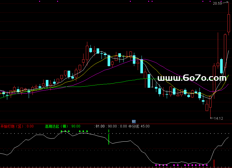 开始打炮(竖): IF(LONGCROSS(VAR1,VAR2*1.05,15) AND VAR1<40,20,0),COLORRED,STICK,LINETHICK2;
