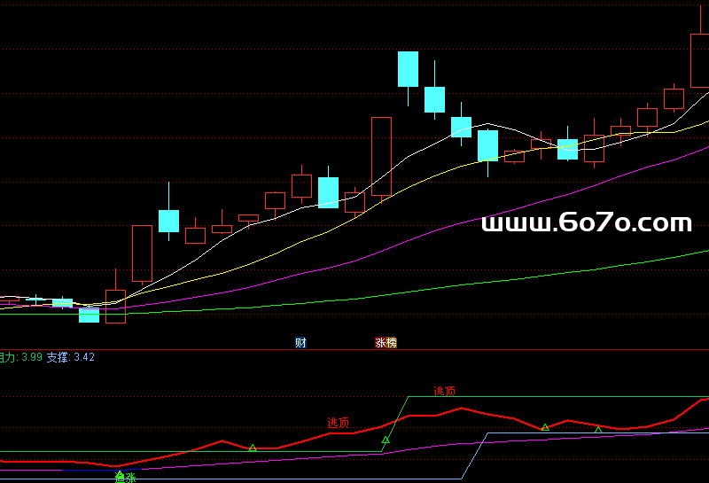 03 实战应用:真金白银换来的经验记得去年3月份,我用这个指标捕捉到了浙江建投的那波行情。当时股价在生命线附近震荡,突然出现了"△"信号,我果断入场,随后吃了5个涨停板!