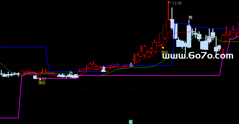 下降价格线:LLV(上升价格线,8),COLOR00FF00;