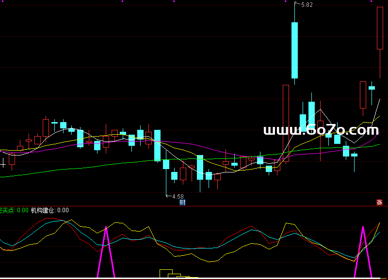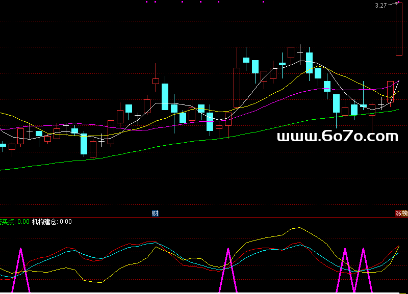 买入时机: IF(CROSS(J,3),65,0),COLORFF00FF,LINETHICK3;