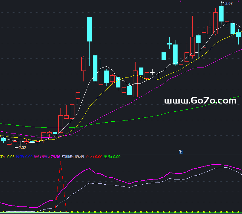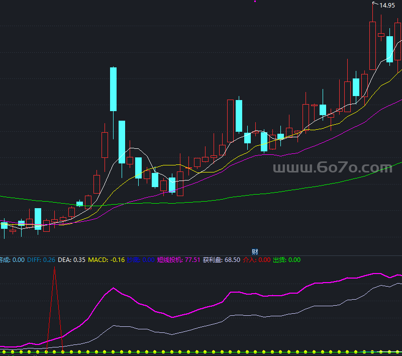 03 指标适配:不是所有股票都配得上这个“神器”这个指标最适合三类股票:一是超跌后缩量的“黄金坑”个股,比如连续3日换手率低于2%且股价接近60日均线;二是突破平台时量能温和放大的趋势股,比如MACD在0轴附近金叉;三是游资爱炒的“小而美”题材股,市值50亿以下、筹码集中度高的更易触发信号。