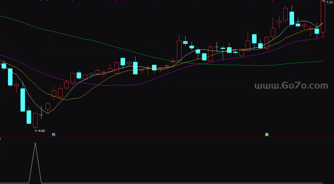 选股点的诞生逻辑:春笋指标的选股点不是凭空而来,而是经过层层筛选的结果。想象一下,主力要拉升一只股票,必然经历“打压吸筹-洗盘-拉升”三个阶段。我们的指标正是精准定位在洗盘结束、拉升开始的转折点。当股价长期低于60日均线,市场情绪低迷时,主力悄悄建仓。此时DIF值逐渐升高,就像竹笋在地下积蓄能量。当主力完成吸筹,开始试盘拉升时,DEA条件被触发,春笋信号诞生。这个信号告诉我们:主力已经吃饱喝足,准备开始拉升了。