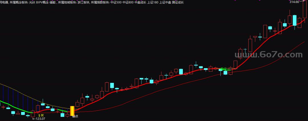 操作口诀:“指标亮黄灯,MACD来确认;量能突增时,果断把仓进”