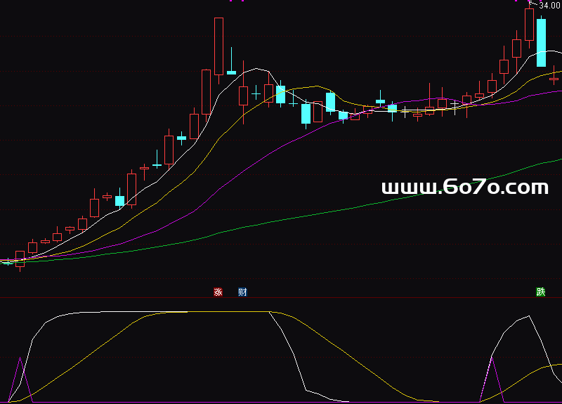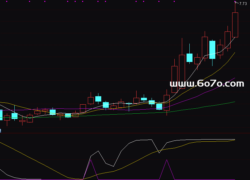 B 线:A 线的 10 日平均(庄家中长期意图)当 A 线向上穿破 B 线(金叉),就是庄家吹响进攻号角时!
