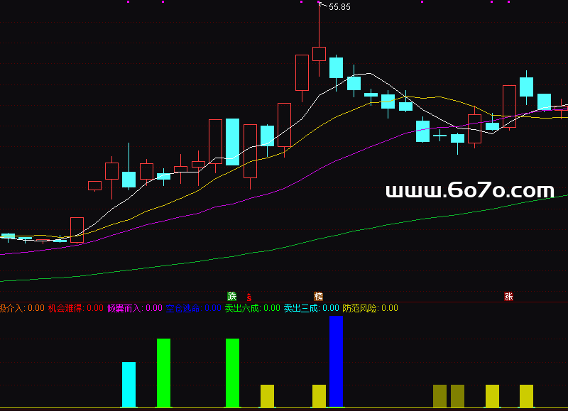 案例2:避坑“伪反转”信号:某股虽触发 MJ14(弱势反弹),但 MC6 同步亮起(高位滞涨),副图提示 “空仓逃命”蓝柱;结果:躲过15%跌幅!💡 我的口诀:“紫柱满仓,蓝柱清仓,黄柱观望,红柱试仓”