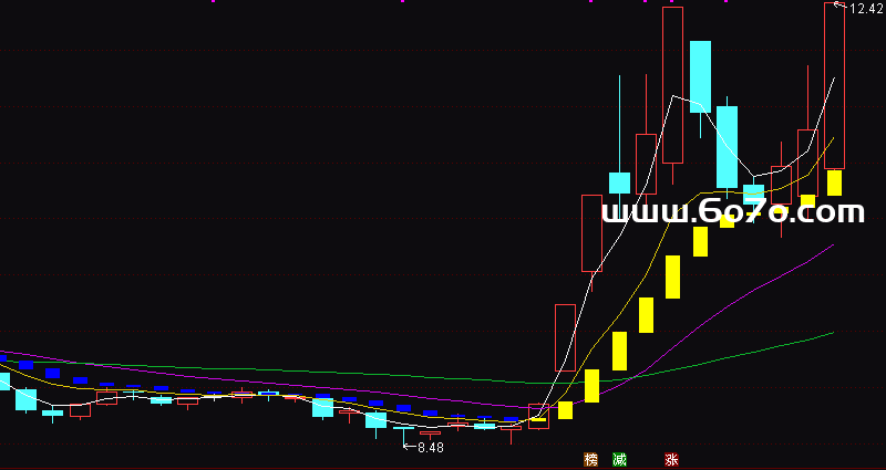 持股区域:STICKLINE(A>B,A,B,2,0),COLORYELLOW; // 黄柱:上涨动力区