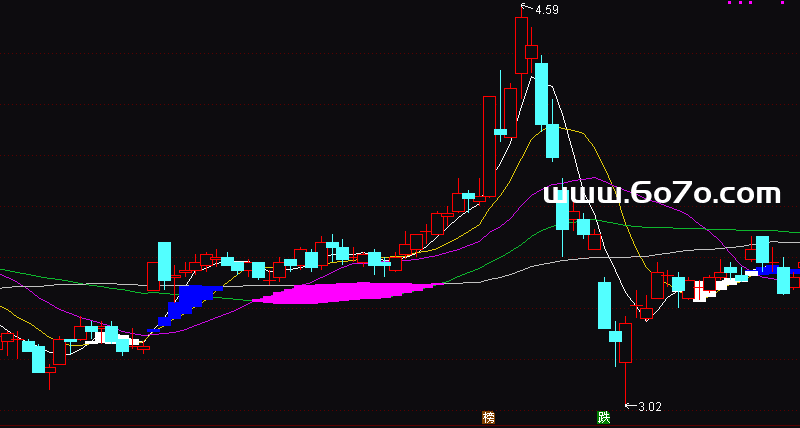 STICKLINE(MA5>=MA10 AND MA5<MA20,MA10,MA5,4,0),COLORWHITE;