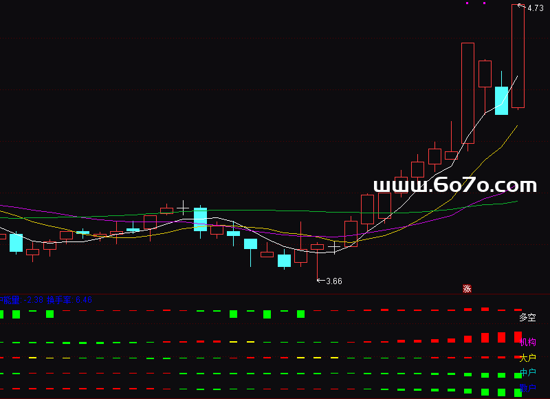 - 大户、中户、散户能量:同样用颜色区分资金动向。