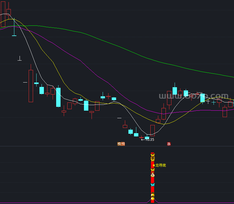 - 趋势弹簧: - SK指标压缩到10以下,意味股价被压到极限,像弹簧蓄满反弹势能。终极信号:当超跌(B≤10)+ 趋势压到极致(SK≤10)+ 两者同步拐头向上 → 紫色“龙寻底”信号诞生!
