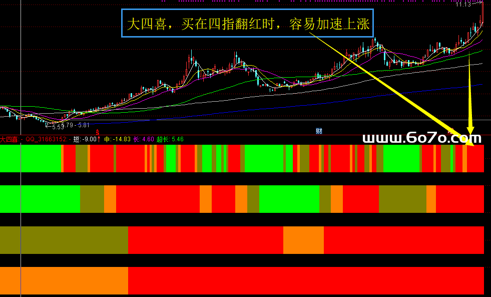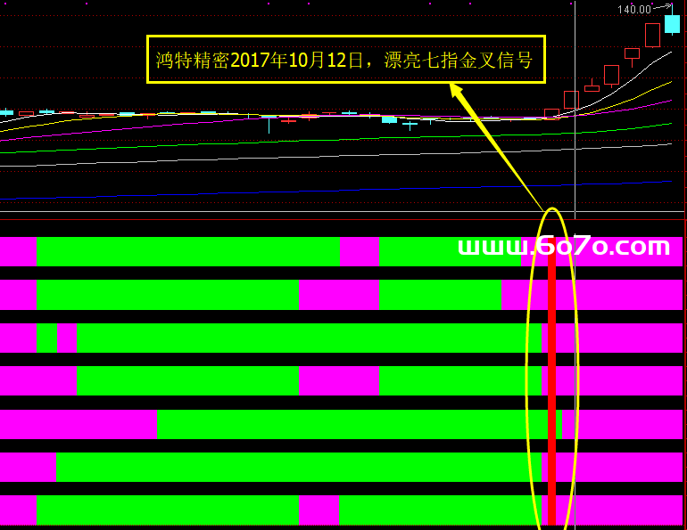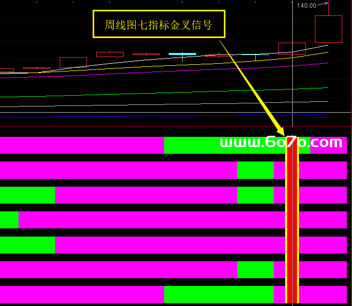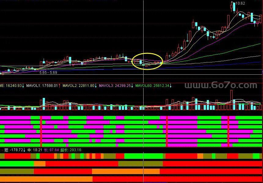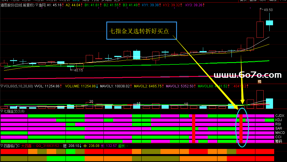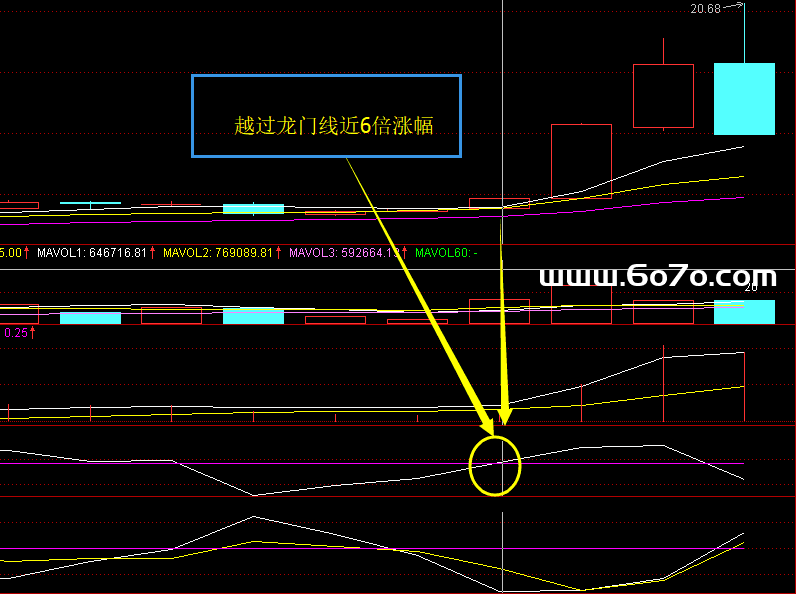 上方白线突破洋红色“门槛线”(专业叫“一号线过龙门”,代表短期趋势走强);