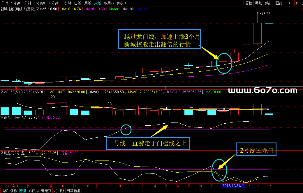 只有两个条件同时满足,才算真正“过龙门”!举个栗子:2024年的某只新能源大牛股(为避免荐股嫌疑,咱不说名字),就是在2024年3月同时突破一号线、跌破二号线,之后半年涨了200%!这就是“过龙门”的威力——趋势一旦形成,想不涨都难!