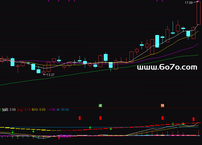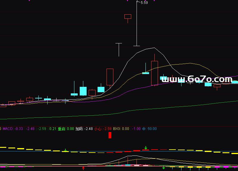 第一个功能:判断“大方向”(MACD改良版) MACD大家都听过,但普通MACD经常“滞后”,等金叉出现时,股价已经涨了一大截。这个指标对MACD做了两个关键优化: