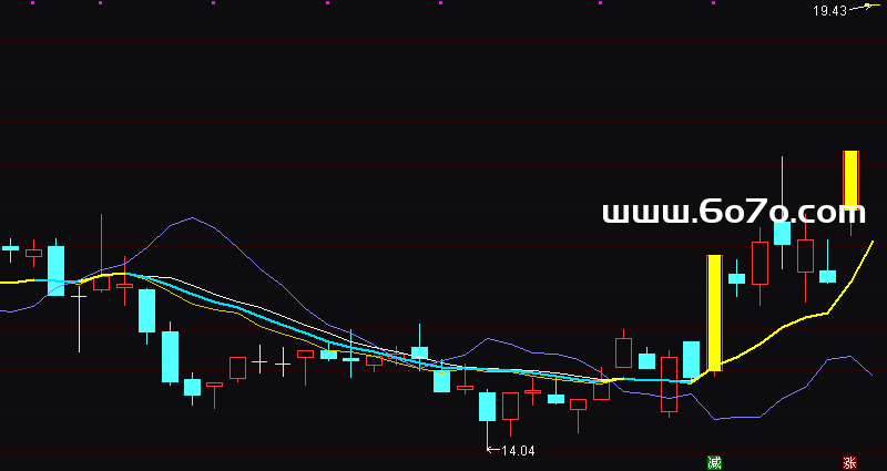 FL:MA(CLOSE,13)+Abs(MA(CLOSE,13)-REF(MA(CLOSE,13),1)); // 防御线:防突然变盘FS:MA(CLOSE,13)+MA(CLOSE,13)-REF(MA(CLOSE,13),1); // 进攻线:抓加速行情CG:IF(MA(CLOSE,13)<FS,FS,MA(CLOSE,13)),COLORF4E202; // 黄金趋势线(粗黄线)