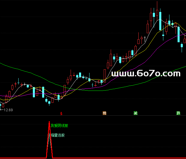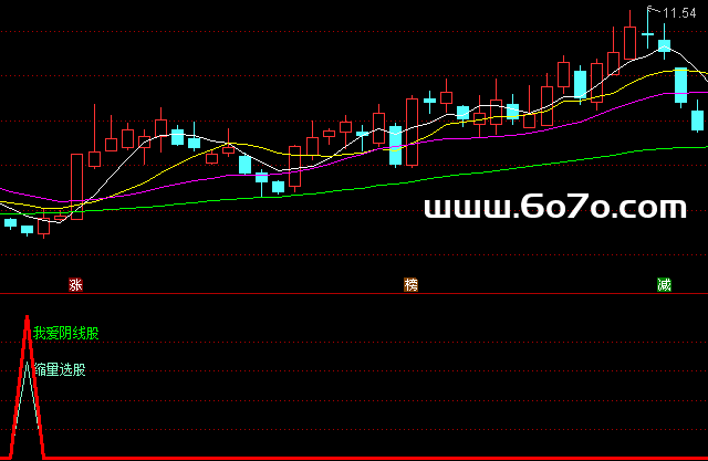 我所使用的 “我爱阴线股” 指标的核心逻辑是:连续下跌后的缩量阴线可能预示着反弹机会。当股价经过一段时间的下跌,卖压逐渐减弱,成交量萎缩,往往意味着空方力量衰竭,此时一旦有资金入场,很容易引发反弹。