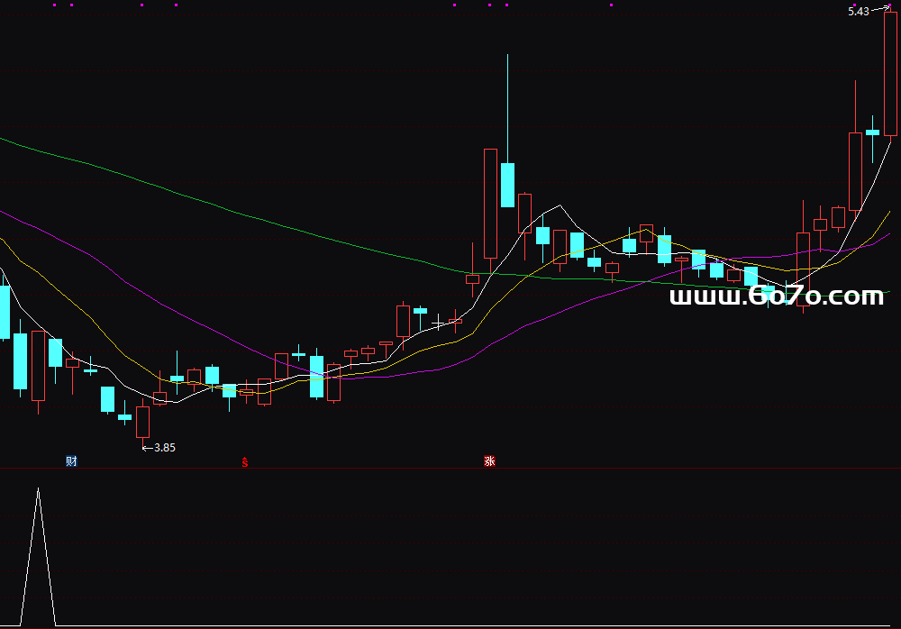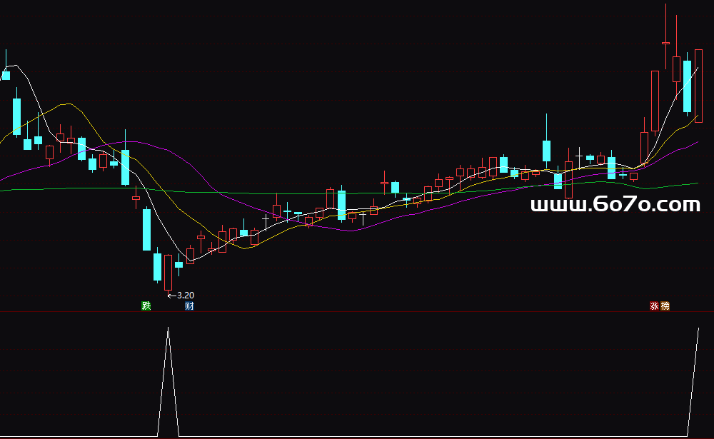 最后提醒:这个指标在通达信软件上使用效果最佳。大家可以将它设置为副图指标,这样在主图看 K 线的同时,副图可以直观看到信号提示。