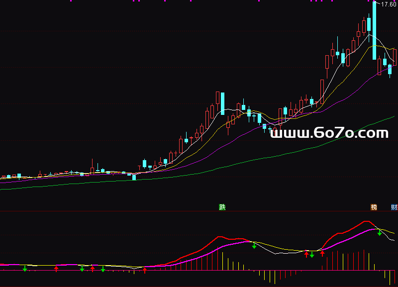 抄底紫箭头的秘密:当快线(DIF)上穿慢线(DEA)且DEA ≤ -0.07(深跌区域),会弹出紫色“抄底”箭头!原理:主力常在深跌区突袭,-0.07是历史数据验证的“黄金坑”阈值。