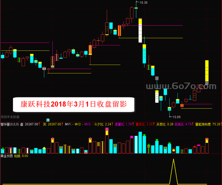去年我操作过一只光伏股,当时板块利空不断,股价连跌5天,跌幅超20%。某天收盘后,“抢钱”指标突然跳黄线(即信号触发)。我翻看它的形态: